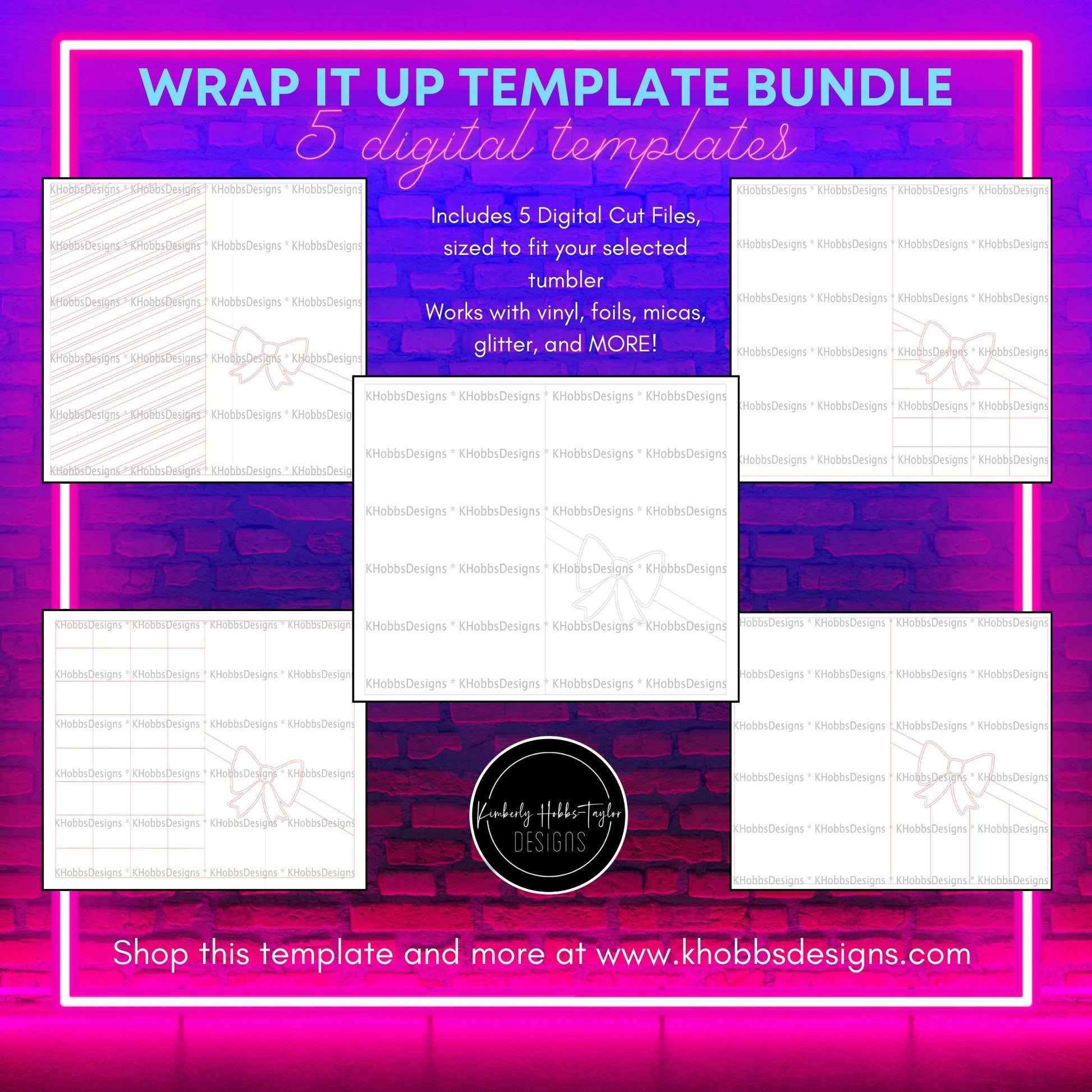 This BUNDLE includes digital downloads of all 5 Wrap It Up templates, sized to fit the Tipsy Magnolia 24 Plump tumbler.