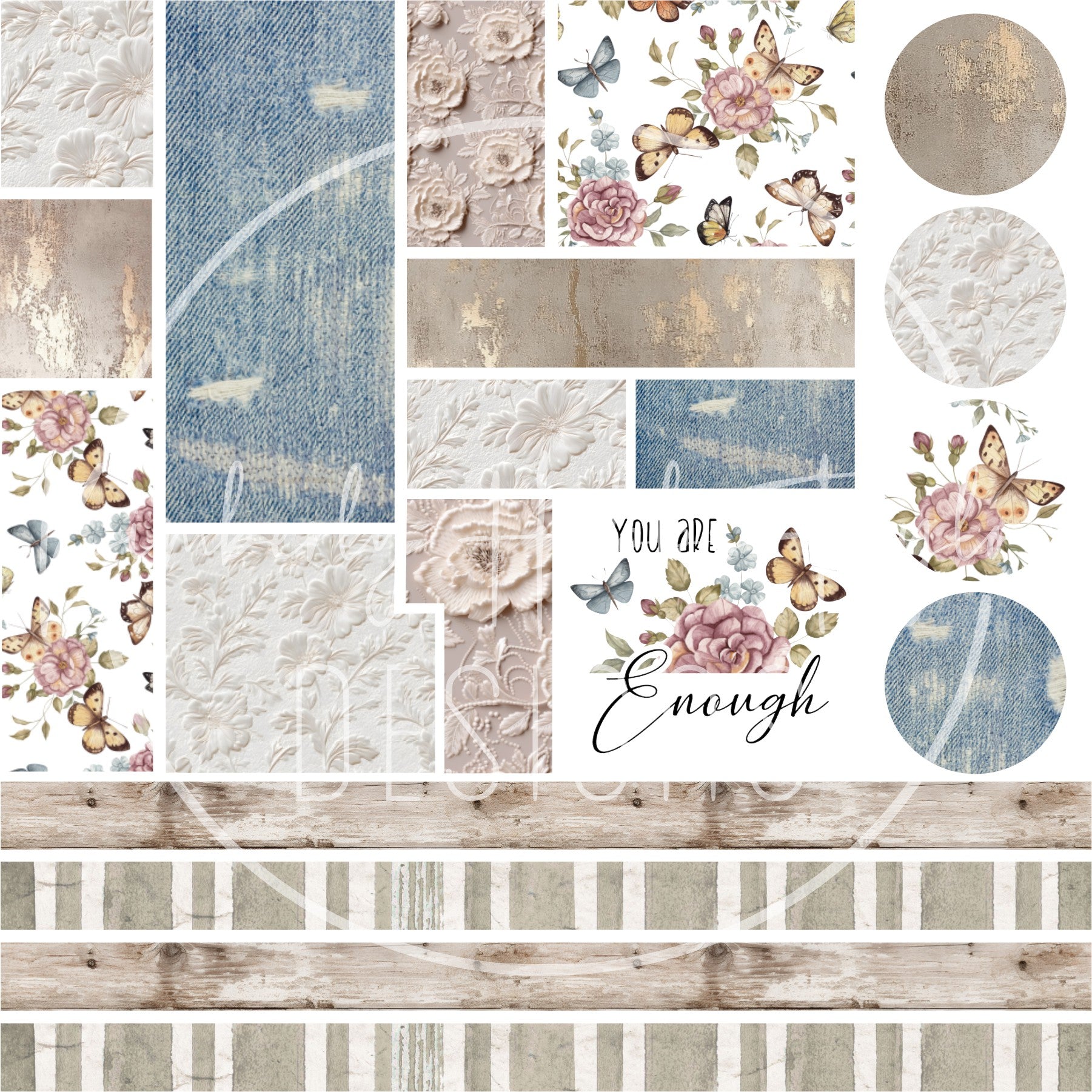 One (1) sheet of patterned adhesive vinyl. Includes patchwork sections, block stripes, and circles for cup bottoms or keychains. Similar concept to my One & Done template created a few years back.